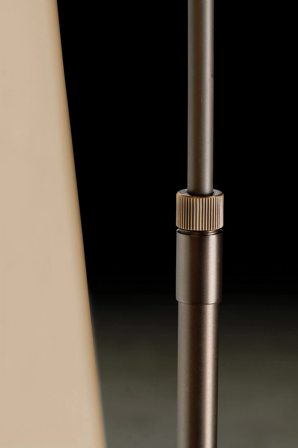 Un profil Ă©lancĂ© et fin avec armature mĂ©tallique finition fumĂ© mat, un abat-jour en chintz aux belles proportions, c’est le lampadaire-liseuse classique LampBoy. Le modèle est dotĂ© d’un petit socle en disque de mĂ©tal surmontĂ© d’un pied en deux parties, l’une droite et l’autre une tige fine en col de cygne rĂ©glable en hauteur, le tout en mĂ©tal finition fumĂ© mat qui lui donne une patine particulière, et coiffĂ© d’un abat-jour de 26cm de diamètre lĂ©gèrement conique en chintz couleur sable. Le modèle, idĂ©al Ă©clairage de salon, diffuse une lumière chaleureuse et homogène. En activitĂ© depuis plus de 35 ans et une des rares entreprises allemande restante Ă manufacturer ses luminaires du mĂ©tal brut au produit fini, la maison familiale Holtkotter livre annĂ©es après annĂ©es des collections au design raffinĂ© et aux finitions ciselĂ©es.