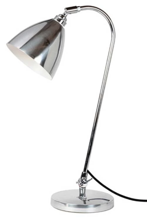 Cette lampe d bureau chrome Solo appartient Ă Task, la gamme la plus emblĂ©matique d’Original BTC, qui comprend de nombreuses lampes de bureau, plusieurs appliques et un plafonnier, toutes munies d’un rĂ©flecteur Ă la forme très pure, très caractĂ©ristique et indĂ©modable. Le modèle prĂ©sentĂ© sur cette page a un pied recourbĂ© simple, aux extrĂ©mitĂ©s duquel se trouvent deux rotules permettant une orientation prĂ©cise de la lampe. Le pied, de couleur assortie au rĂ©flecteur, procure Ă la lampe une très bonne stabilitĂ©. Cette lampe de bureau existe en mĂ©tal laquĂ© noir, crème, vert olive, chrome, gris, rouge et blanc. Le fil Ă©lectrique est recouvert de tissu.