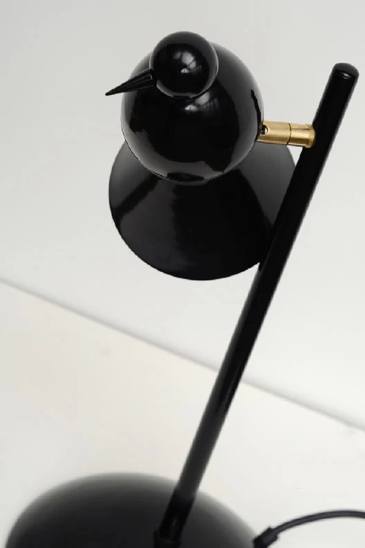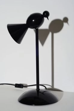 Cette merveilleuse lampe de bureau noire prend la forme d’une tige fixe Ă l’extrĂ©mitĂ© de laquelle se trouve perchĂ©e une alouette stylisĂ©e. Elles sont orientables au moyen d’une rotule: on peut choisir la direction d’Ă©clairage, mais aussi incliner l’oiseau dans la position la plus amusante ou poĂ©tique. Cette lampe de bureau est Ă©quipĂ©e d’une ampoule spot halogène 230V, qui peut ĂŞtre commandĂ©e directement par un variateur standard si nĂ©cessaire. Très belle fabrication en mĂ©tal laquĂ© noir, assemblage Ă la main. Design britannique et fabrication en Allemagne.