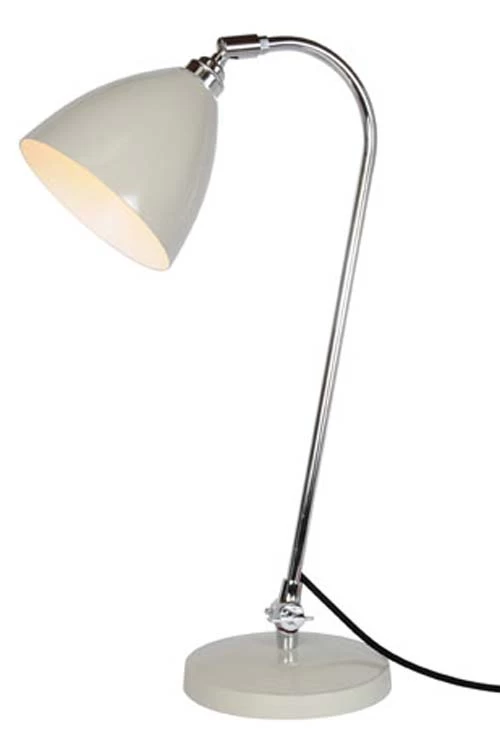 Cette lampe de bureau grise Solo appartient Ă Task, la gamme la plus emblĂ©matique d’Original BTC, qui comprend de nombreuses lampes de bureau, plusieurs appliques et un plafonnier, toutes munies d’un rĂ©flecteur Ă la forme très pure, très caractĂ©ristique et indĂ©modable. Le modèle prĂ©sentĂ© sur cette page a un pied recourbĂ© simple, aux extrĂ©mitĂ©s duquel se trouvent deux rotules permettant une orientation prĂ©cise de la lampe. Le pied, de couleur assortie au rĂ©flecteur, procure Ă la lampe une très bonne stabilitĂ©. Cette lampe de bureau existe en mĂ©tal laquĂ© noir, crème, vert olive, chrome, gris, rouge et blanc. Le fil Ă©lectrique est recouvert de tissu.