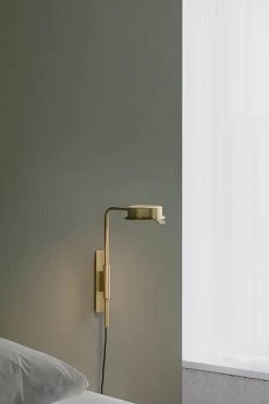 Applique Simple à Tige De Laiton Patiné, Porcelaine Blanche Décorée Et Verre Opale Lisse