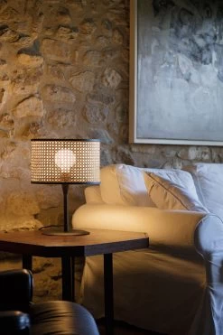La sĂ©rie Mambo est une rĂ©invention du traditionnel rotin en le rĂ©investissant d’un design contemporain et Ă©purĂ©, Mambo Table est une lampe de table en acier noir et abat-jour cylindrique en rotin. PensĂ©e comme lampe de chevet ou de salon, le modèle est composĂ© d’un socle rond et d’un pied en tube d’acier noir lĂ©gèrement conique autour de la douille, surmontĂ© d’un abat-jour cylindrique en rotin, ce matĂ©riau tressĂ© Ă la main qui produit une maille ronde et rĂ©gulière, bordĂ© sur la partie supĂ©rieure et infĂ©rieure d’un cerclage noir. Celui-ci met en valeur la couleur chaleureuse et organique du rotin laissĂ© au naturel. Parfaite petite lampe pour accompagner vos lectures nocturnes.