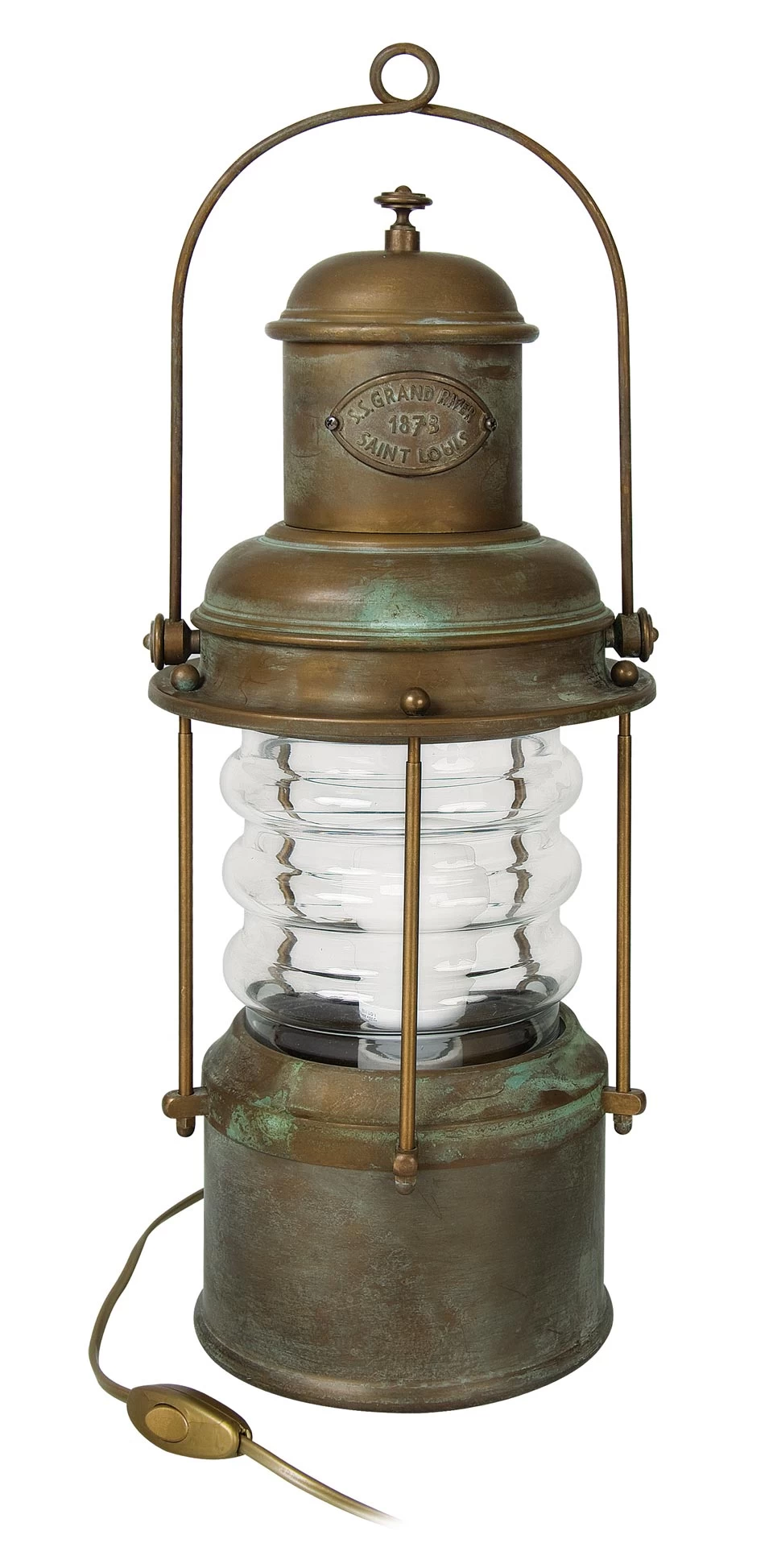 Magnifique travail pour cette lanterne de table en laiton vieilli de la gamme Marine de style rétro avec gravure. Elle est munie d’un verre transparent ouvragé et torsadé protégeant l’ampoule. L’anse permettant de la soulever et le support est également en laiton. La fabrication en laiton massif d’excellente qualité, est effectuée dans les ateliers de Moretti Luce, en Italie.