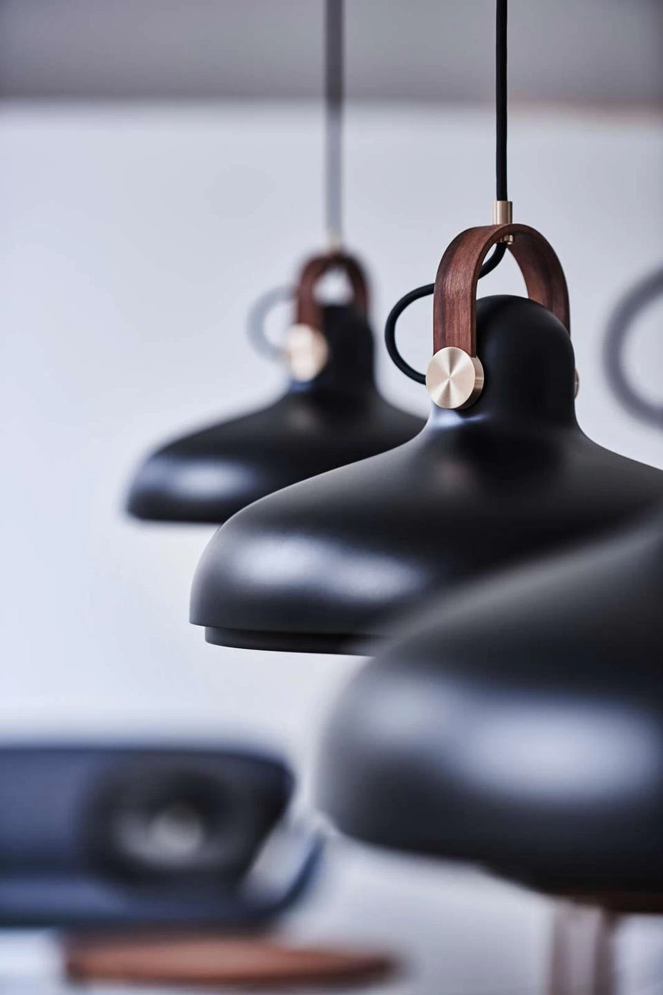 La suspension cloche de la collection Carronade est un modèle aux courbes Ă©purĂ©es et au design Nordique contemporain. Son abat-jour de forme large et Ă©vasĂ©e est rĂ©alisĂ© en aluminium peint couleur noire, Ă©quipĂ© d’un rĂ©flecteur circulaire qui diffuse la lumière de manière harmonieuse. L’abat-jour est fixĂ© grâce Ă deux disques en laiton naturel sur un U en noyer amĂ©ricain sombre, et le câble Ă©lectrique est gainĂ© noir. EmblĂ©matique du design scandinave, la maison danoise Le Klint travaille depuis les annĂ©es 1940 avec designer et artisans d’exception pour concevoir et fabriquer des luminaires intemporels.