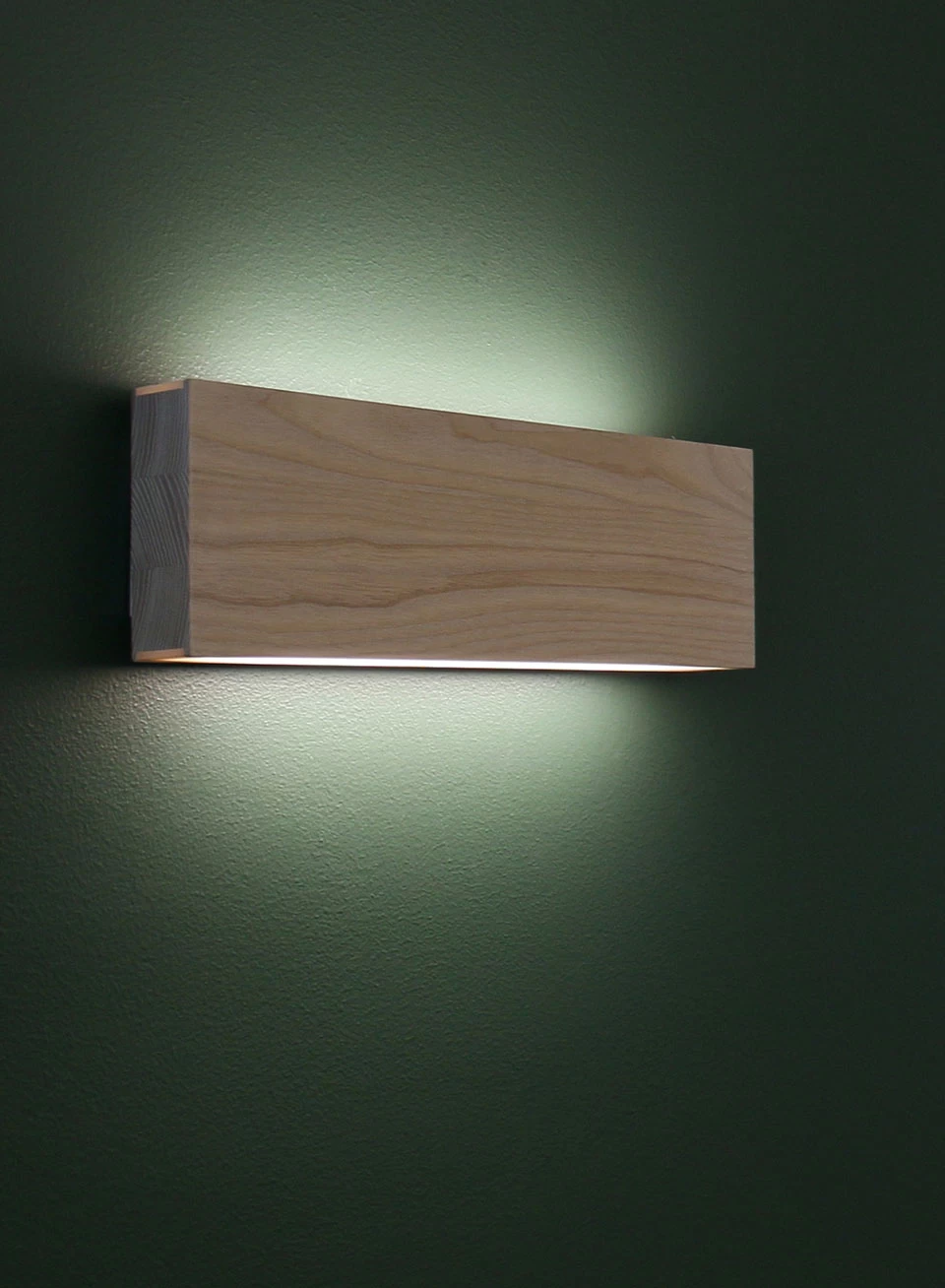 Laissez-vous séduire par la lumière indirecte de la petite et compact LEd120 40cm, une applique petit format en bois dans le pur esprit du design scandinave, minimaliste et contemporain. Le modèle se compose d’une pièce rectangulaire de bois de noyer, une essence plus sombre et très légèrement rougeoyante qui ajoute une touche de solennité, à l’intérieur de laquelle sont encastrés les modules LED, l’un dirigeant la lumière vers le plafond sur la tranche supérieure, et l’autre vers le sol sur la tranche inférieure. LED120 se prête à une variété de situation d’éclairage, mais est particulièrement approprié pour un espace qui préfère une lumière douce et pour de petites espace, grâce à son petit format, un couloir, une tête de lit, une bibliothèque. Elle est équipée d’un boitier Bluetooth Casambi pour la variation de la lumière et le pilotage via une application sur smartphone.