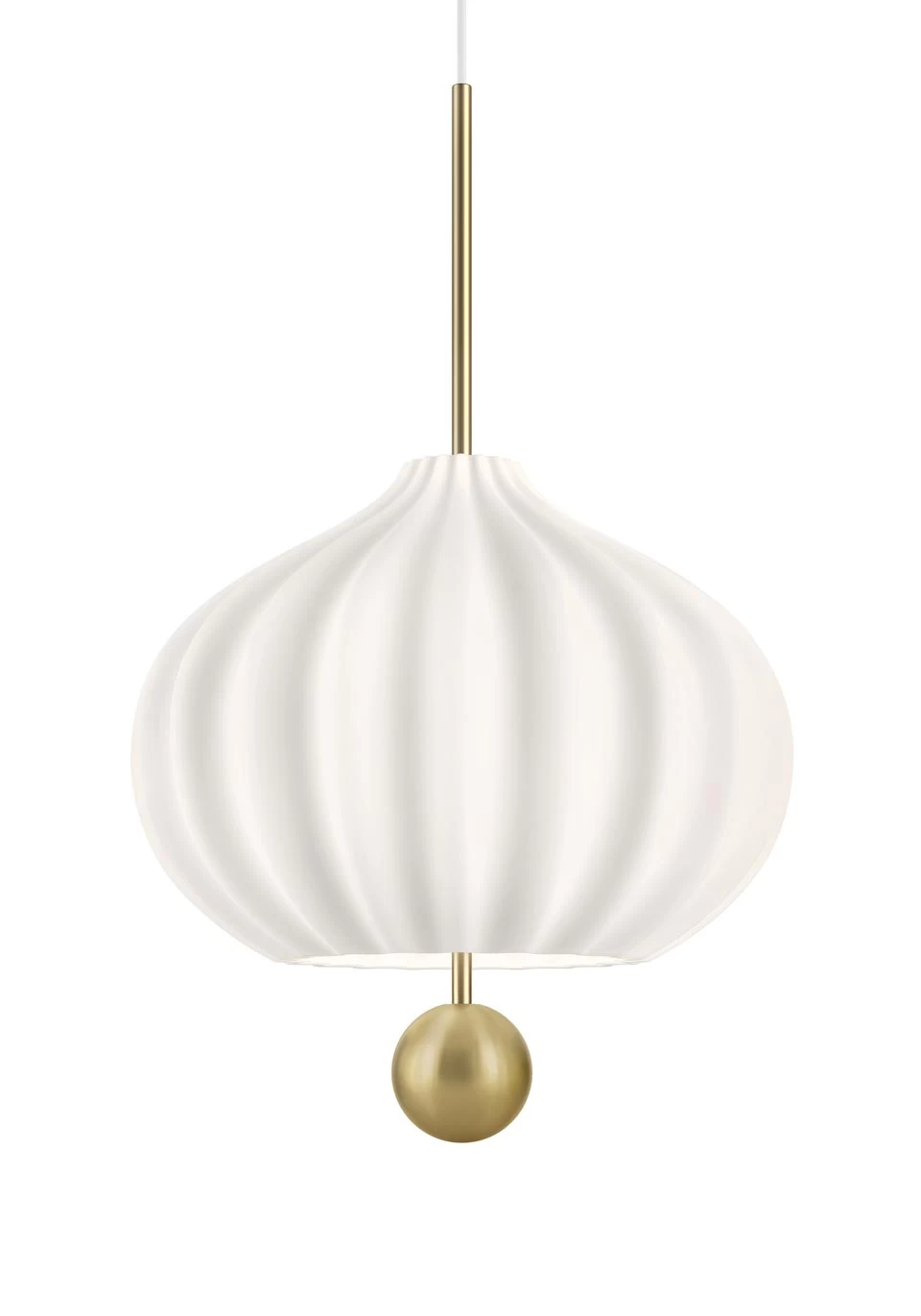 Laissez-vous enchanter par le charme subtil et élégant de la suspension Lilli, son délicat diffuseur en verre soufflé opale et son beau laiton satiné ne vous laisseront pas indifférent. Le modèle est composé comme une fleur de lys renversée, le diffuseur tout en rondeur et ondulation est en verre opalin soufflé double couche, il figure la corolle de la fleur, qui est traversée par un pistil de laiton satiné, celui-ci se prolonge et fait passer le câble de suspension blanc qui fixe la lampe au plafond. Le cosmopolitisme de la maison milanaise KDLN, nouveau logo de l’ancienne Kundalini fondée en 1996, ne renie pas l’excellence du savoir-faire ancestral italien en matière de lumière, et c’est en entretenant créativité, fonctionnalité et précision que la maison s’impose comme un incontournable, avec ses collections éclectiques qui mêlent poésie, simplicité et caractère.