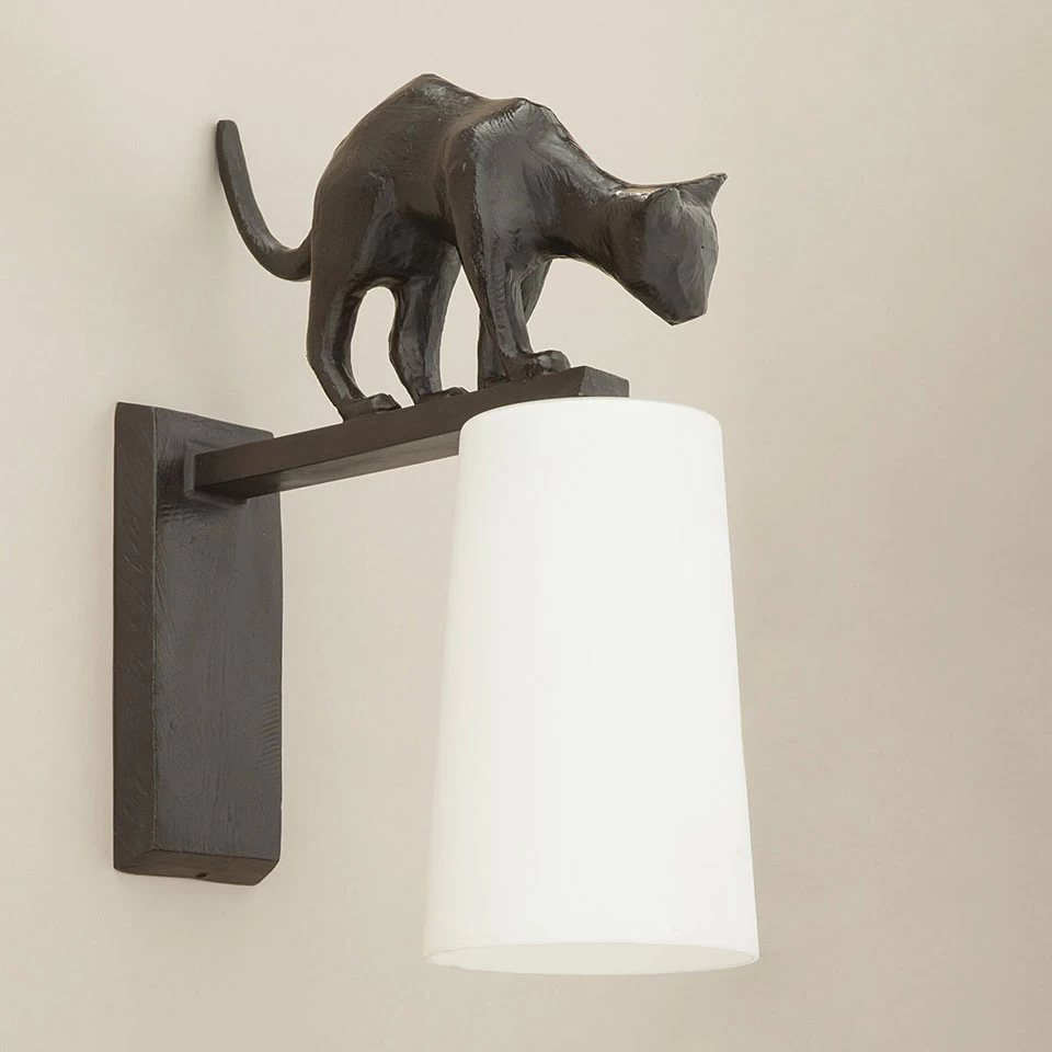 Lola est le gardien félin de votre entrée, c’est une applique d’extérieur lanterne agrémentée d’un chat en bronze patiné noir agrémentée d’un diffuseur en verre opale blanc. Le modèle est équipé d’un support mural simple rectangulaire, surmonté d’un bras horizontal en section carré et d’un joli chat qui semble observer les arrivants. Sur le bras est fixé le diffuseur légèrement conique en verre blanc. Le bronze massif dont l’applique est faite est travaillé d’une belle finition brune qui magnifie la puissance du matériau tout en lui laissant un léger aspect rugueux, avec des irrégularités qui font la dimension unique du modèle.