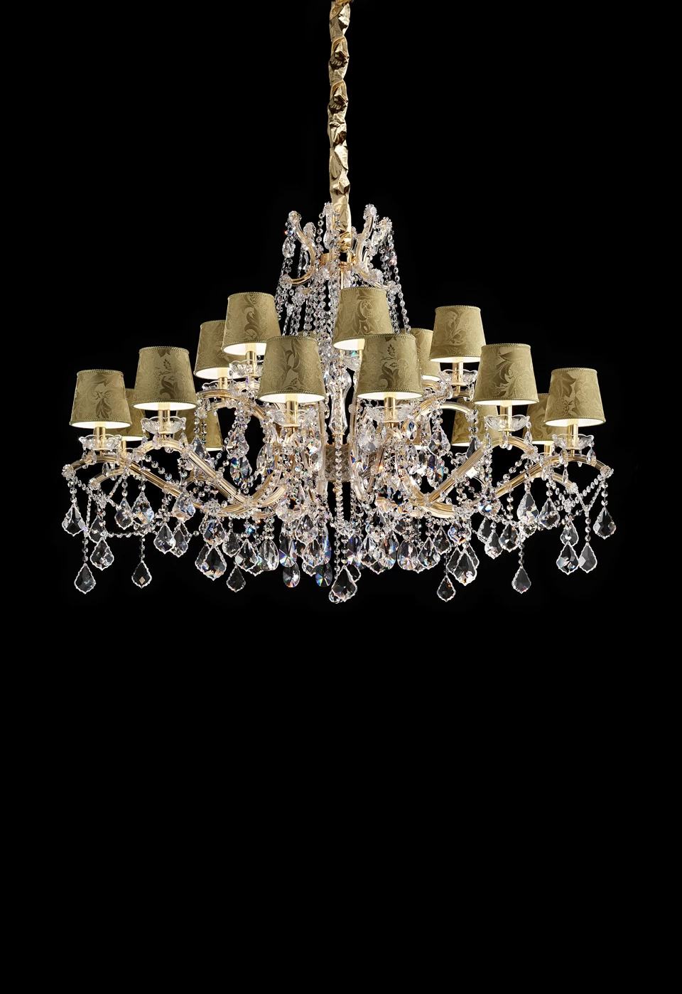 Ce lustre doré 18 lumières d’une élégance sans pareil, dans un style classique vénitien, est constitué d’une structure en métal moulée et dorée, à 2 étages. Les bras supportent chacun la coupelle en corolle sur laquelle est fixée la bobèche dorée et l’abat-jour en damas doré et brodé de motifs floraux. Les luminaires de la maison Masiero sont une combinaison parfaite de matériaux d’exception et savoir-faire d’excellence, la marque italienne créée en 1981 recherche en permanence à allier traditionnel et contemporain. Ce lustre est disponible en différentes dimensions, disponibles dans les options de commande au bas de cette page.