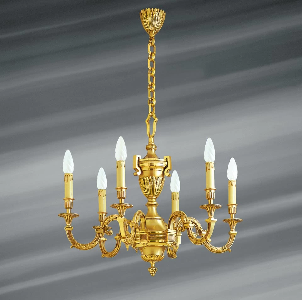 Lustre Doré Style Directoire, Bronze Massif, Doré, Six Lumières