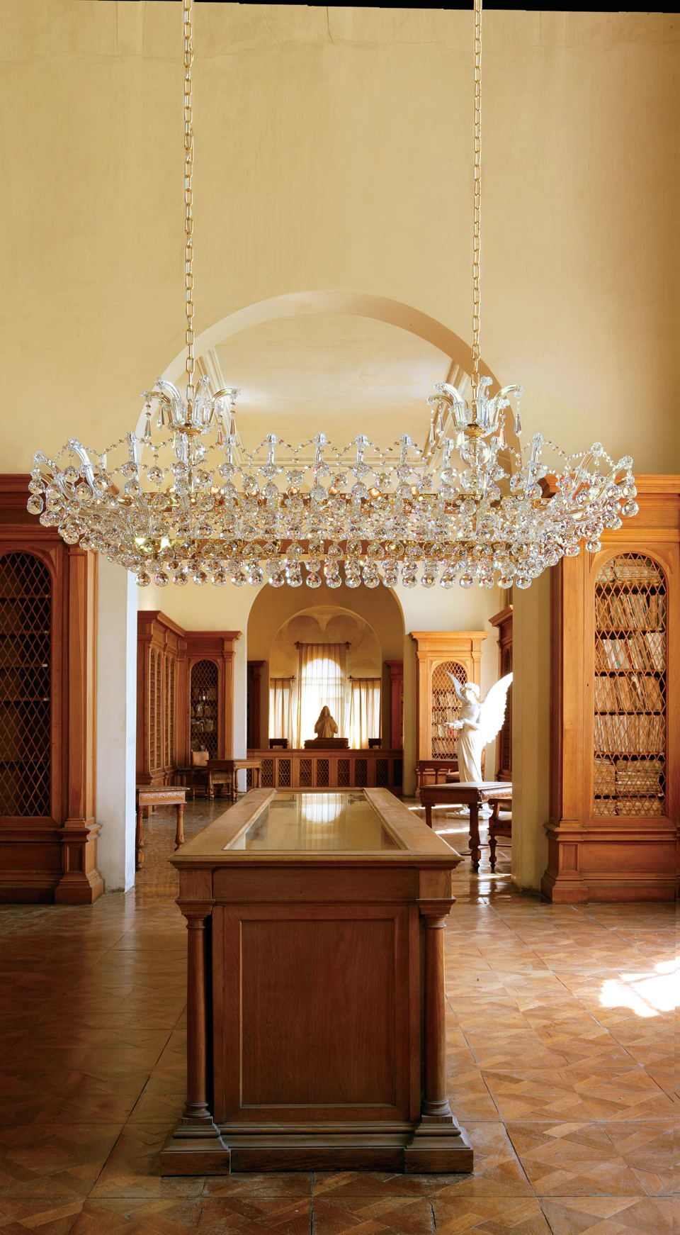 Ce sublime lustre est constitué d’un structure métallique rectangulaire dorée, l’ensemble est chargée d’un réseau de pampilles en cristal, délicatement façonnées, reliées entre elles par des chaînes de pampilles de cristal. Le lustre est fixé sur deux chaines dorées, chacune décorées d’un fut richement paré de pampilles, telle deux petites fontaines surplombant le luminaire. Les luminaires de la maison Masiero sont une combinaison parfaite de matériaux d’exception et savoir-faire d’excellence, la marque italienne créée en 1981 recherche en permanence à allier traditionnel et contemporain. Le modèle est disponible en 2 dimensions, disponibles dans les options de commande au bas de cette page.