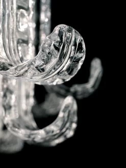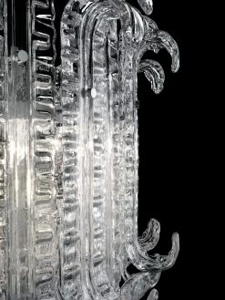 Superbe lustre 18 lumières, New Felci est entièrement en cristal vénitien transparent et touches de métal finition chrome poli, doté d’un design classique d’inspiration Art Déco. Le luminaire forme une cascade faite d’un cristal de haute facture façonné pour former de délicate et voluptueuses feuilles typiques de l’esthétique vénitienne. Ciselée à la perfection, la partie en cristal est construite autour d’une légère structure en métal dont la finition chrome poli transparaît par touches, et l’argenté est visible sur le cône de plafond, insistant sur une élégance certaine, évocation d’un style tout droit sorti des Années Folles. Barovier & Toso, issue d’une longue lignée de maîtres verriers qui remonte au 14ème siècle, perpétue la tradition et les savoir-faire familiaux ainsi que la place maîtresse de la maison, tout en ayant introduit une dimension moderniste et une esthétique innovante dans la discipline du travail du verre de Murano. Ce lustre est également disponible en version 30 lumières dans les options de commande au bas de cette page et un modèle 12 lumières est visible sous la référence 21070175.