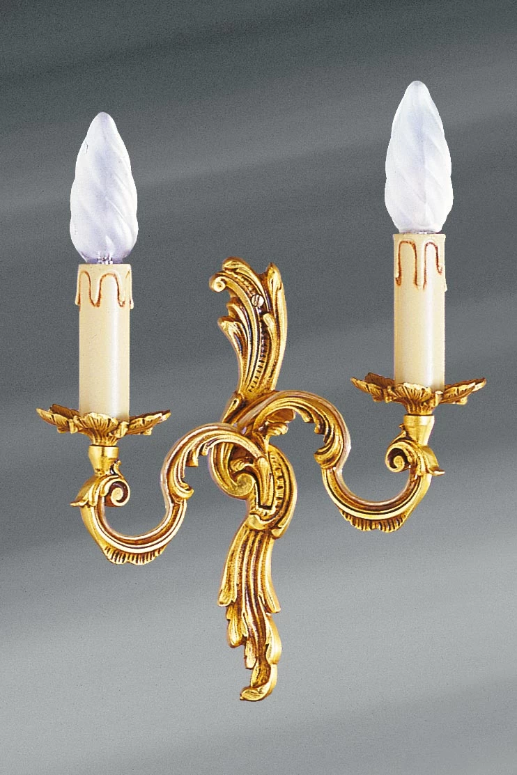 Ravissante, cette petite applique murale Ă deux bougeoirs en bronze Louis XV est constituĂ©e d’un support dĂ©corĂ© d’un motif en feuilles et en perles. Il soutient deux branches recourbĂ©es dĂ©licatement sculptĂ©es, portant bougeoir Ă leur extrĂ©mitĂ© et dĂ©corĂ©es de façon assortie. Les bassins, coupelles placĂ©es Ă la base des bougeoirs, sont sculptĂ©s en feuilles Ă©vasĂ©es. La rĂ©alisation, d’une qualitĂ© exemplaire, est effectuĂ©e selon les mĂ©thodes les plus traditionnelles, en France, dans les ateliers de Lucien Gau. Il existe dans la mĂŞme collection plusieurs appliques murales Louis XV, Ă trois lumières (rĂ©fĂ©rences 12020228, 12020248 et 12020254), Ă deux lumières (rĂ©fĂ©rences 12020230, 12020247 et 12020255), Ă une lumière (12020259, 12020281) ainsi qu’un ravissant modèle Ă deux lumières avec miroir ovale (12020278). L’applique Ă une bougeoir rĂ©fĂ©rence 12020259 est exactement assortie.