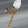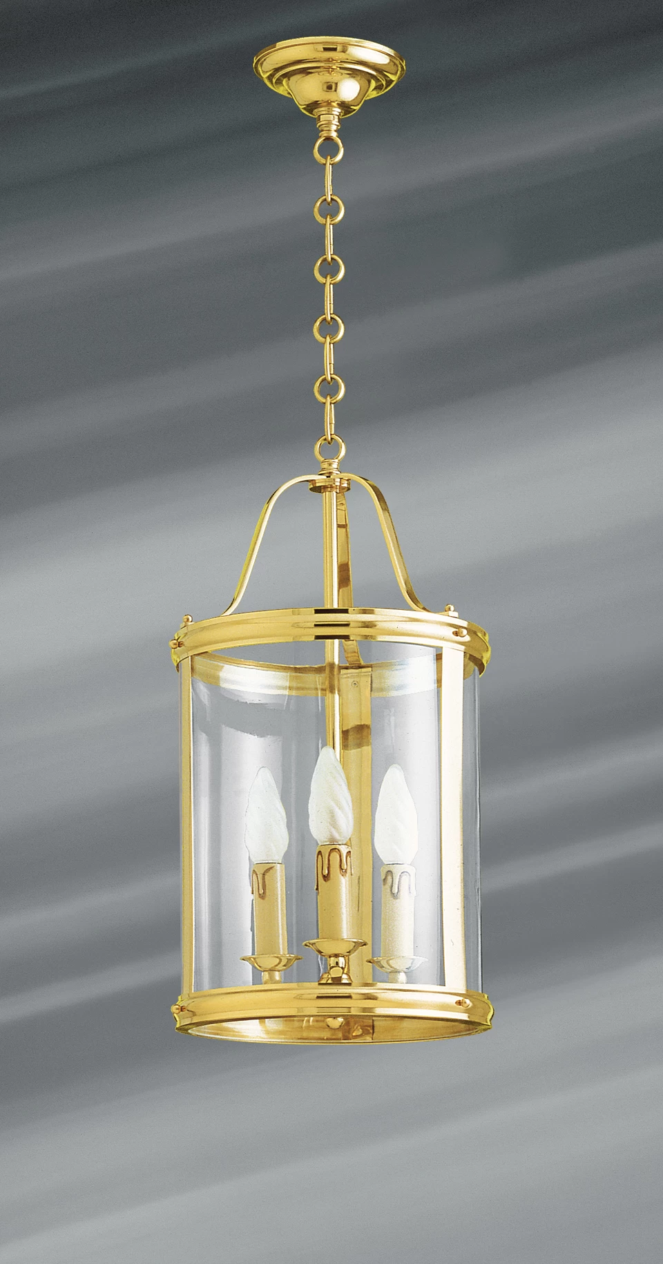 Grande pureté pour cette lanterne de style classique en verre courbé et bronze massif. Ses trois lumières mettent en valeur l’éclat de son verre et de la finition dorée de ses montants en bronze. Les trois vitres qui l’entourent sont individuellement démontables et remplaçables si nécessaire. La pureté de sa ligne en font un objet de décoration qui se mariera aisément à votre intérieur. Historiquement placé dans les rues et les halls d’immeubles pour en accroître la sécurité, la lanterne est aujourd’hui un élément servant à éclairer et habiller l’intérieur des demeures. Elle peut éclairer une entrée ou un boudoir, par exemple. Ce modèle de lanterne existe dans des dimensions légèrement plus grandes dans un modèle à quatre lumières présentés dans les options de commande en bas de la page. Il existe aussi dans des dimensions bien plus imposantes visible dans un modèle à six lumières sous la référence 16060003.