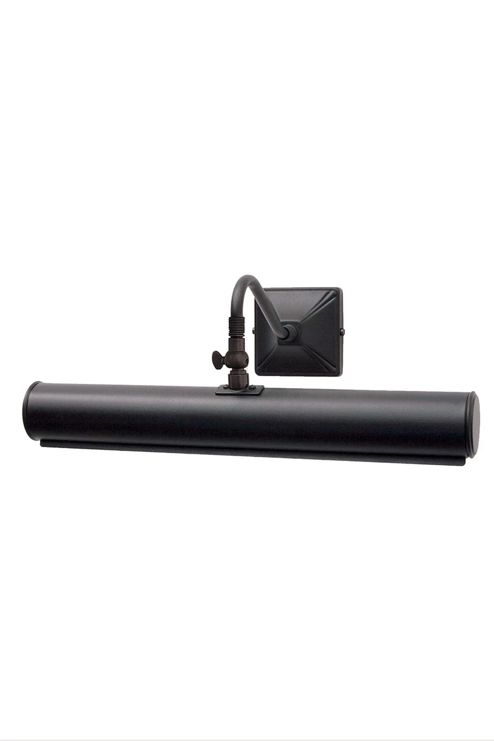 Joli Ă©clairage pour tableau 36cm au style industriel de la collection Picture Lights fabriquĂ©e Ă la main, en mĂ©tal finition noire. Le modèle se prĂ©sente sous la forme d’un diffuseur en cylindre articulĂ©, montĂ© sur un bras en col de cygne avec vis de serrage apparente, et d’un support mural carrĂ© lĂ©gèrement en cloche. Le mĂ©tal est travaillĂ© d’une belle finition noire qui donne une patine authentiquement industrielle au modèle. L’impeccable fabrication est celle de la maison britannique Elstead lighting, connue depuis le XVIIème siècle comme les forges Elstead, aujourd’hui alliant la perpĂ©tuation des techniques artisanales Ă une vĂ©ritable modernitĂ© dans le design et la rĂ©alisation.