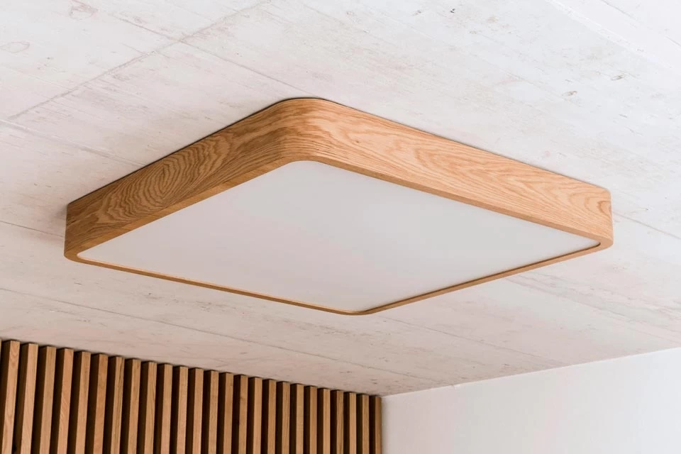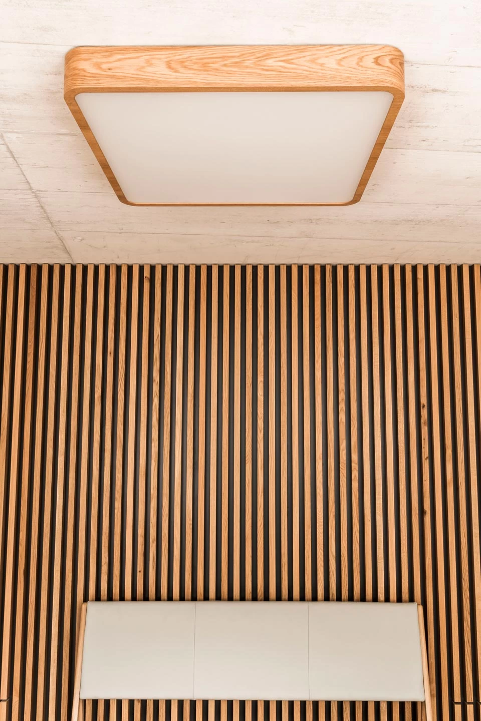La collection WoodLED est une série de luminaires qui combinent bois et LED, ici nous avons un superbe plafonnier minimaliste fait d’un carré de 60cm de côté en chêne aux angles arrondis, au sein duquel est encastré un module LED carré à la lumière blanche de grande qualité ( CRI> 90) qui forme comme une dalle sur le plafonnier, et diffuse une lumière agréable et très puissante. Le driver est intégré et compatible avec une installation DALI.