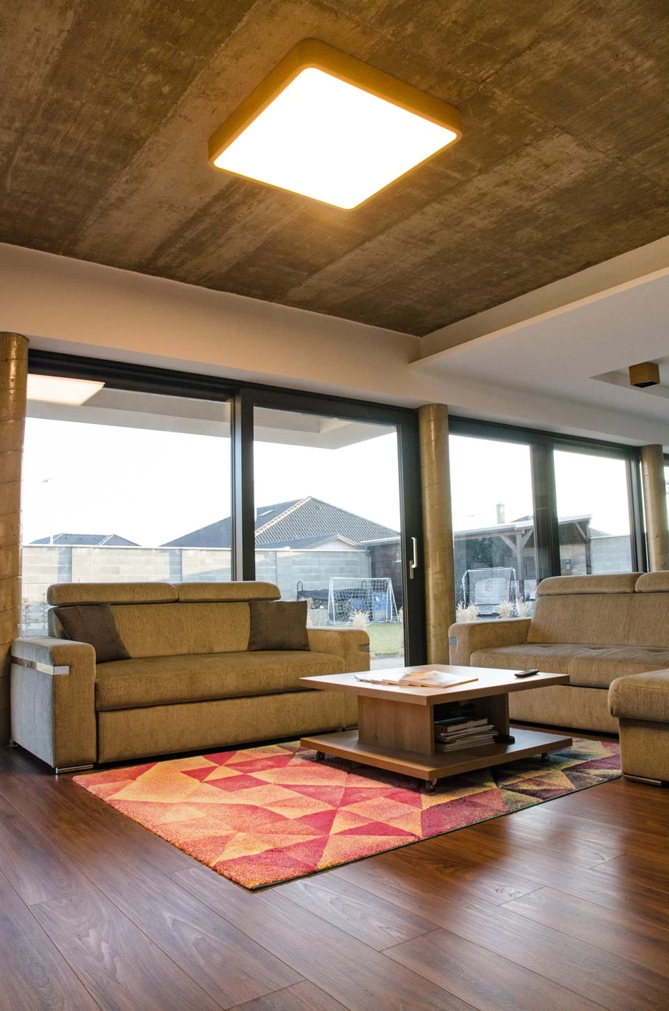 La source de lumière pour le modèle intermédiaire provient d’un module LED CRI90 de 123W, 3000K et 11130lm avec driver inclus, dimmable DALI.