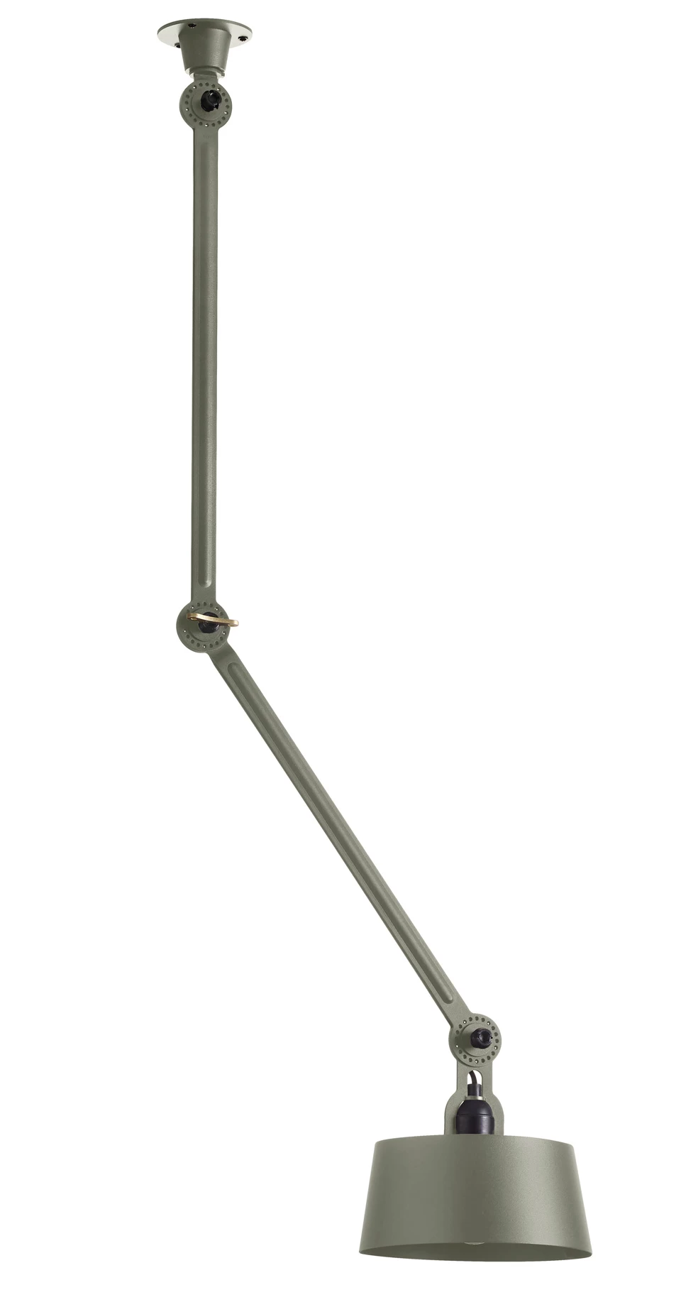 Le plafonnier vert kaki Bolt style industriel en acier s’articule Ă l’aide de 2 bras et d’un abat-jour orientable par des rotules crantĂ©es. Il est rĂ©alisĂ© en acier et aluminium laquĂ©. Le luminaire est livrĂ© avec un très bel outil papillon siglĂ© avec la marque TONONE et chaque lampe est numĂ©rotĂ©e. L’outil papillon est dorĂ© par dĂ©faut, mais disponible Ă©galement Ă la demande en noir, cuivre, ou acier. Le plafonnier est livrĂ© avec un support de fixation au plafond et 2 m de câble, il peut ainsi ĂŞtre installĂ© directement sous l’arrivĂ©e Ă©lectrique ou dĂ©portĂ©. Les lampes TONONE sont entièrement fabriquĂ©es Ă la main au Pays Bas par des artisans hautement qualifiĂ©s. Ce plafonnier existe en deux tailles et 4 couleurs diffĂ©rentes, en bleu visible sous la rĂ©fĂ©rence 17090183, en orange sous la rĂ©fĂ©rence 17090184 et en Ă©cru sous la rĂ©fĂ©rence 17090186.