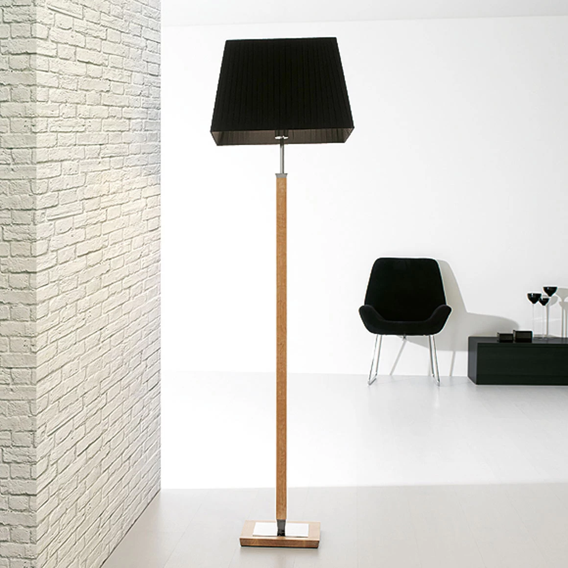 Sobre et distingué, le lampadaire de la collection Prisma Chêne s’intégre avec aisance à tous les intérieurs contemporains. Equipé d’une ampoule de 100W, ce lampadaire fournit un éclairage d’ambiance abondant mais non éblouissant grâce aux qualités de filtrage de l’abat-jour dont il est équipé. Les luminaires de la très belle collection Prisma Chêne sont fabriqués en chêne massif naturel. La couleur claire du chêne permet l’intégration de ces luminaires dans des univers contemporains, auxquels ils apportent une vraie touche d’élégance raffinée. Les abat-jour, carrés, sont réalisés en tissu plissé noir, les finitions et certains éléments de structure sont en métal chromé poli. La gamme de luminaires Prisma Chêne comprend une applique simple, une applique double, une applique triple, une suspension, quatre lustres à quatre lumières, un lustre à six lumières, trois lampes et un lampadaire.