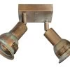 Une belle rampe de spots, équipée de deux llumières, de la collection Montagne. Le socle tout en longueur, marqué au milieu d’un petite bille de métal, est en métal dont la finition est travaillée de manière artisanale pour donner un aspect de rouille. Les spots sont orientables sur des bras articulés qui permettent d’orienter l’éclairage selon vos envies. La marque Ryckaert offre une production artisanale et authentique depuis 1947, à partir de matériaux tels que le métal ou le bois, qui sont sculptés et patinés à la main, et nous livrent ainsi des produits uniques. La gamme comprend également deux appliques simples visibles sous les références 17090039 et 17090040, une autre applique double référence 17090042 et une rampe à 4 spots sous lé réference 17090043.