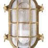 Jolie applique d’extérieur Santorini de la gamme marine, inspirée des lampes de navires de croisière. Entièrement en laiton naturel dorée qui se patine avec le temps. Une cloche de verre transparent est enchâssée dans la structure, ceinte d’une grille de laiton, qui lui donne un air de balise de détresse. Elle est fixée sur un support mural circulaire et un bras en équerre triangulaire. C’est un modèle équipé de la protection IP44 qui rend les modèles résistants aux conditions d’extérieur (corrosion du sel ou du froid, humidité), et est combiné à l’utilisation par la maison italienne Moretti d’un laiton massif d’excellente qualité.