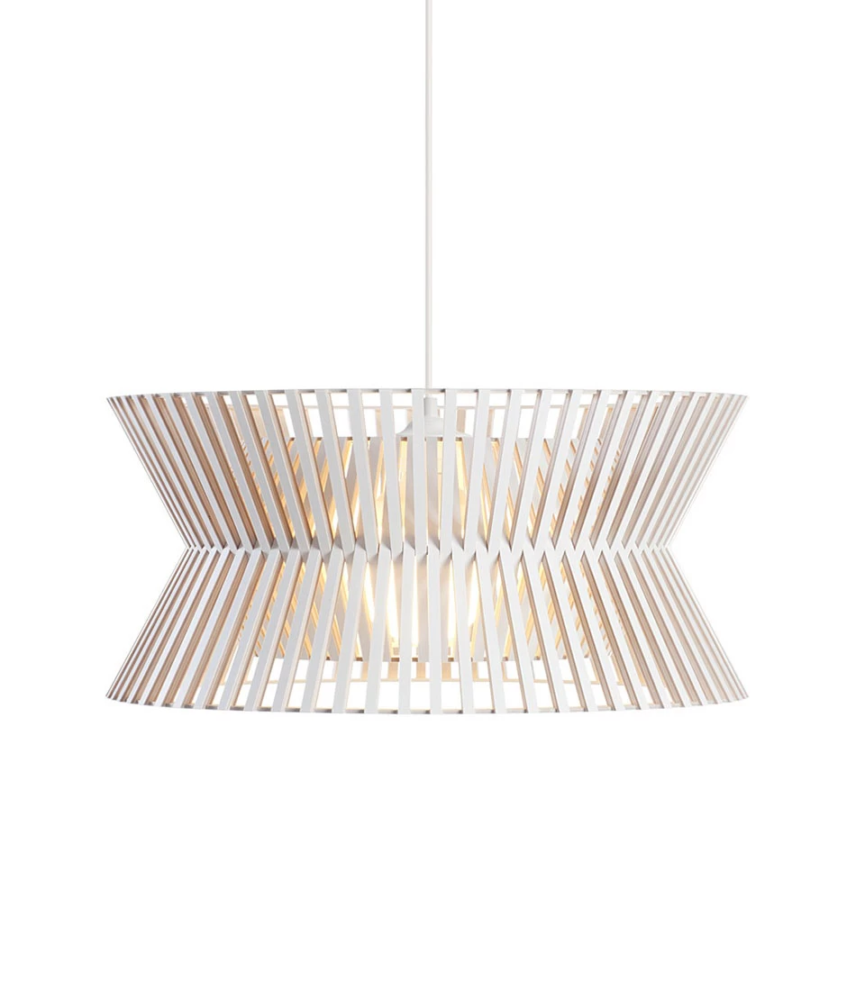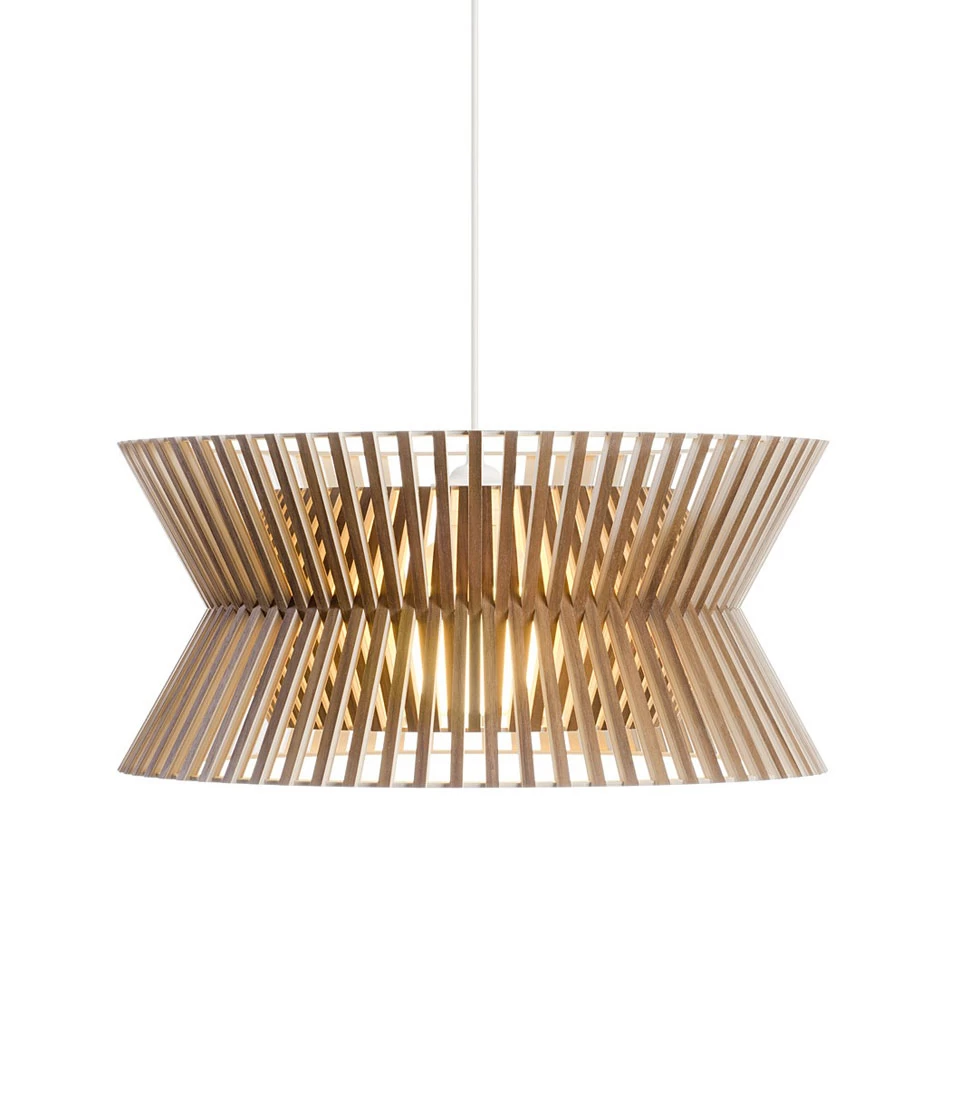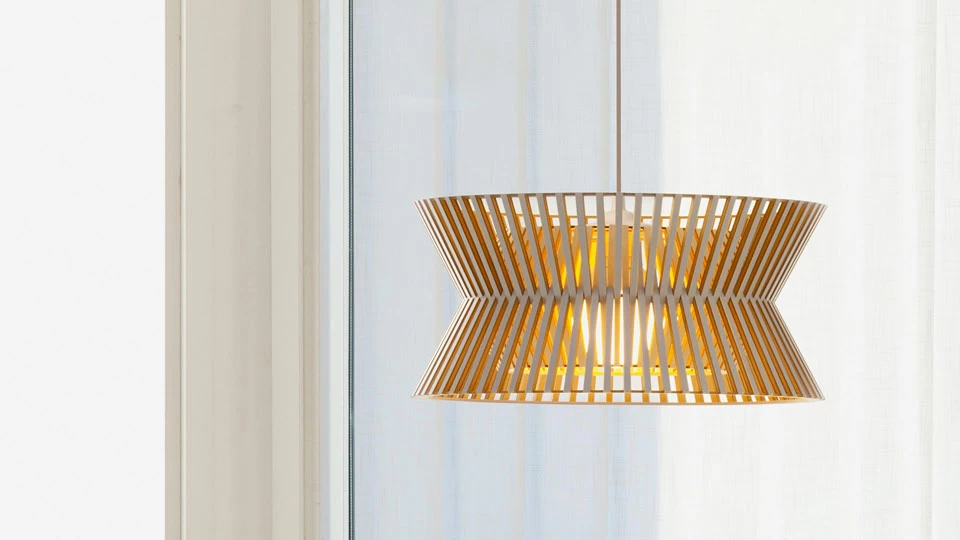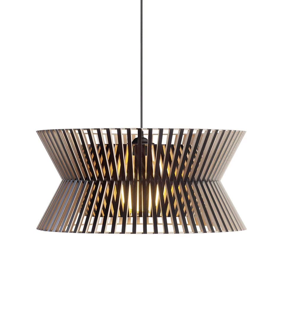 Kontro est une suspension aux formes surprenantes et géométrique. Elle est ici proposée avec les lames de bois recouvertes de stratifié noir et elle existe dans 4 finitions différentes. Le câble d’alimentation est blanc pour les modèles en bouleau, noyer et laminé blanc et noir pour la suspension noire, les cônes de plafond sont coordonnés. Secto Design offre une collection de luminaires de style scandinave d’une grande unicité. Suspensions, appliques lampes à poser et lampadaires sont coordonnés et se déclinent en 4 matières, le bouleau massif, le placage en noyer, le stratifié noir et le laminé blanc. Cette suspension existe en 4 finitions différentes: bouleau, noyer, noire ou blanche disponibles dans les options de commande au bas de cette page.