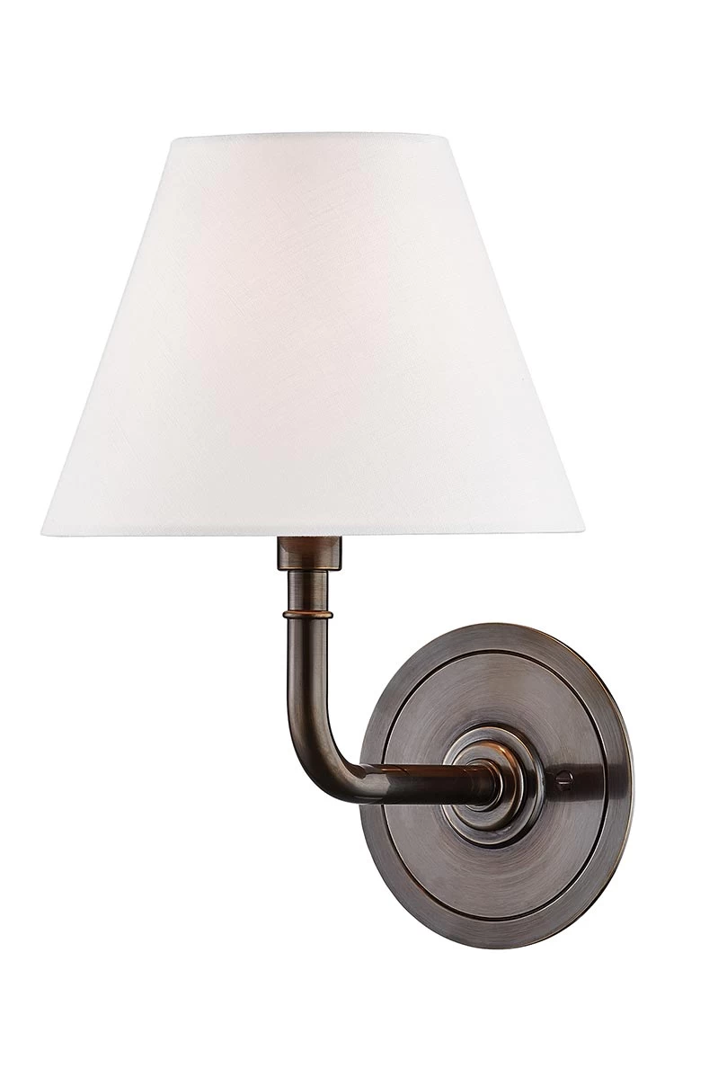 Remarquez l’élégant design de l’applique Signature n°1, ici proposée en finition bronze vieilli, avec la rondeur et la finesse de son support mural, l’angle droit arrondi de son bras en métal sombre et son abat-jour conique en lin blanc qui diffuse une lumière douce et pâle. La finition bronze vieilli, qui donne cette teinte sombre au métal, confère une patine vintage au modèle, qui allie classe et sobriété pour s’insérer dans tout intérieur, des plus classiques aux plus contemporains. La maison Hudson Valley qui recouvre différentes marques américaines de luminaires propose une gamme marquée par la diversité et la qualité de ses produits.
