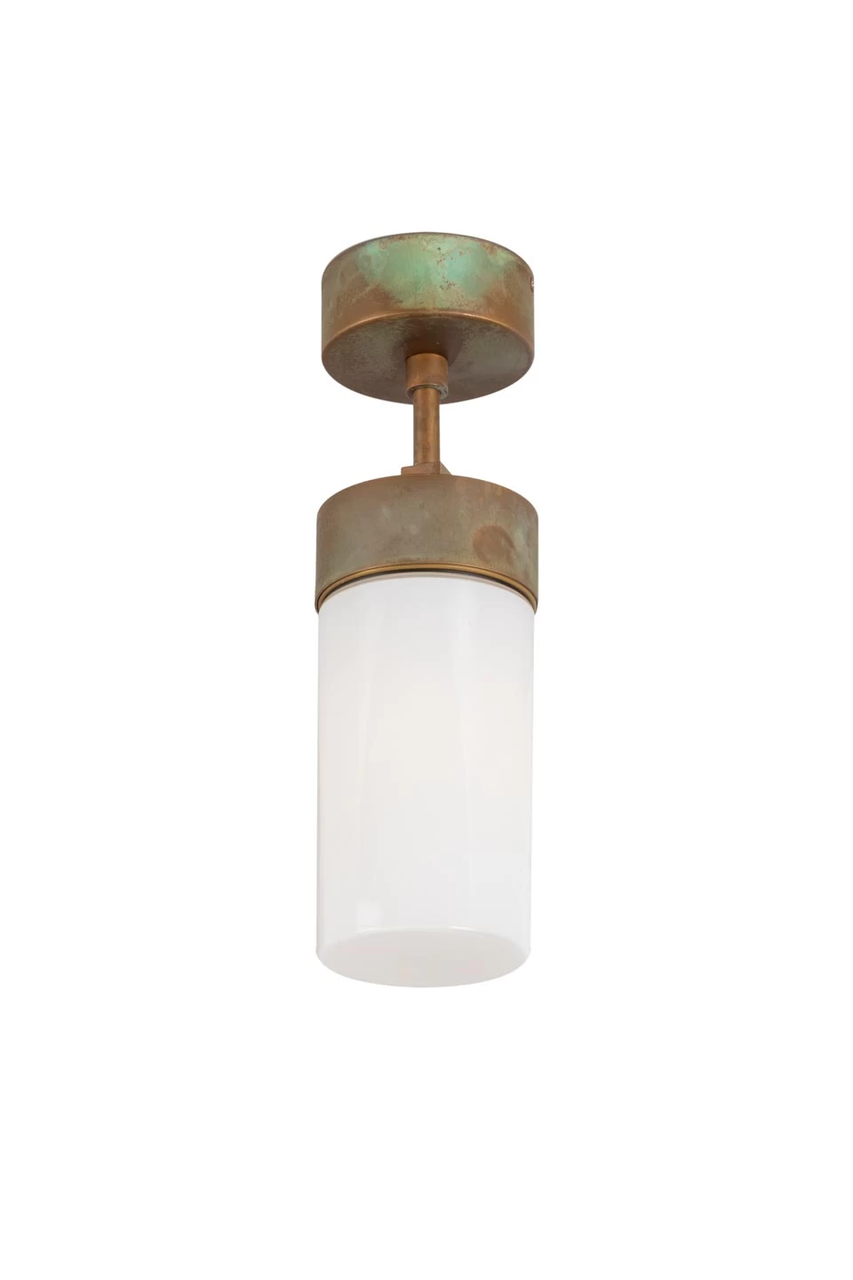 Ce plafonnier d’extérieur de la collection Silindar fait partie de la gamme Campagne. Un design élégant et simple pour ce modèle au format cylindrique, avec son tube de verre opale qui protège l’ampoule enchâssée sur un socle puis une tige courte fixée à un support de rond. La finition du métal vieilli avec ses touches de vert-de-gris donne une patine particulière au plafonnier. Le laiton massif d’excellente qualité utilisé par la maison italienne Moretti, combiné à la protection IP44 confère au matériau une importante résistance aux intempéries et en font donc un excellent modèle d’extérieur, même en bord de mer ou en montagne.