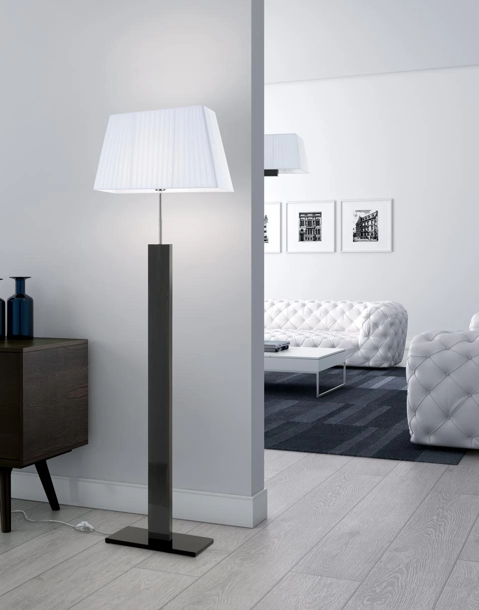 Ce beau lampadaire est issu de la collection Smooth Wengué. Il s’articule en trois matériaux qui le définissent et lui confère une grand élégance. Le socle rectangulaire et le pied sont en bois wengué, un bois tropicale sombre aux reflets cuivrés, et l’abat-jour rectangulaire plissé blanc est relié au pied par une tige de fer chromé. Une ligne contemporaine et géométriquement rigoureuse, la ligne Smooth Wengé est sobre et adapté à un environnement résidentiel ou professionnel. La maison Paulo Coelho se distingue par des abat-jour d’une grand valeur esthétique et des collections très complètes déclinées en lampes, lampadaires, appliques et suspensions. Cette ligne se définit par la simplicité, l’élégance et le minimalisme. La collection Smooth Wengué comprend également une petite lampe disponible sous la référence 16060815 et une grande lampe sous la référence 16060816.
