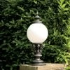Lampadaire De Jardin En Aluminium Gris Et Verre Blanc Plissé