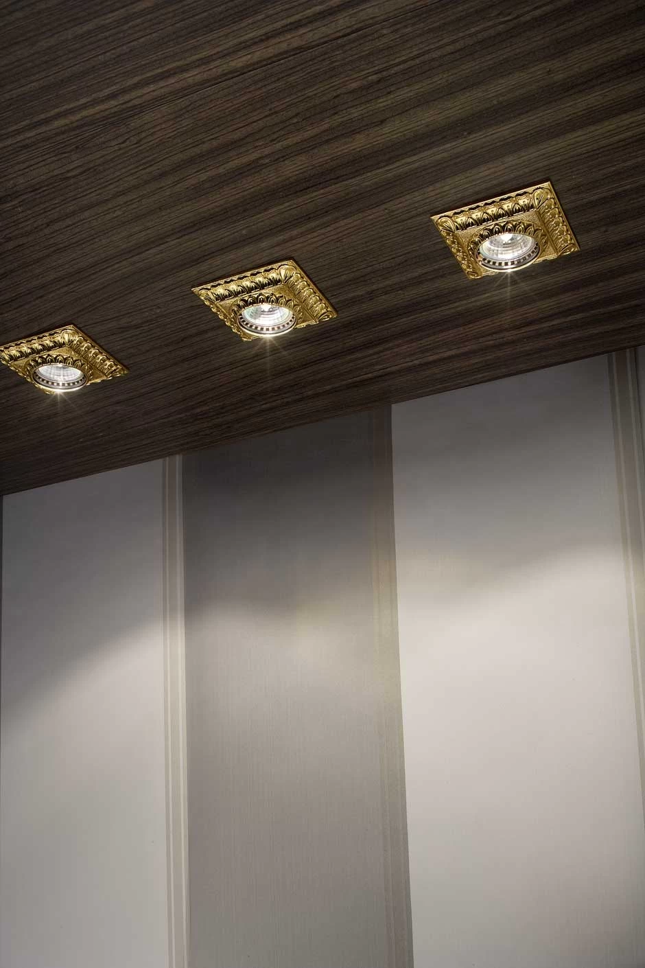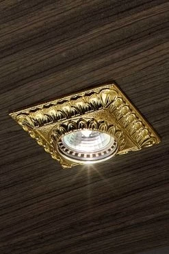Ce spot carré doré est conçu pour produire un éclairage de plafond moderne, dans des environnements décorés avec un style classique. Sans ostentation, sa façade carrée de 10cm de coté est ornée d’un motif particulièrement décoratif. Ce spot intègre un projecteur halogène moderne, d’une puissance maximale de 35W.