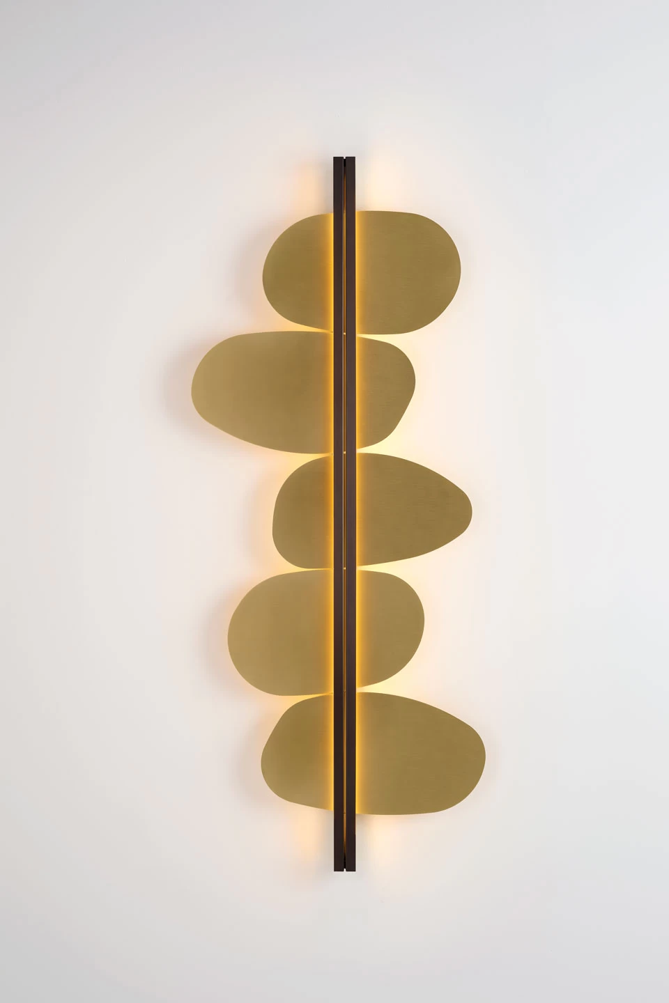 Laissez-vous charmer par les courbes harmonieuses de ce modèle d’applique Stone doré et noir issu de la collection Strate, une expérience lumineuse et géométrique en forme de véritable sculpture lumineuse de laiton massif avec éclairage LED intégré, elle habille votre intérieur et devient une pièce centrale de décoration. Le modèle Stone est composé d’une section carrée verticale de laiton finition graphite satiné intégrant diffuseur en polycarbonate et module LED. Les 5 plaques fines de laiton satiné en forme de gros galets sont glissées sous la pièce centrale et amène dorure et chaleur à la lumière, pour un modèle pensé pour être posé à la verticale comme à l’horizontale. La maison française CVL fondée en 1960 affirme un parti pris design et contemporain depuis les années 90 avec des luminaires remarquables par la qualité des matériaux utilisés, en particulier le laiton massif, et la finesse de leur dessin. Tous les luminaires sont fabriqués à la main au sein des ateliers situés en Pays de la Loire, pour une production 100% française, s’inscrivant dans une démarche environnementale vertueuse.