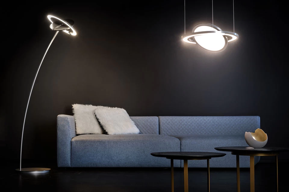 Le modèle est disponible en puissance supérieure (4250+4500 lumens) dans les options de commande au bas de cette page, et le modèle est également proposé en finition laiton ou noir mat sous les références 22070124 et 22070126, chacun dans les deux types de puissance. La collection comprend aussi un plafonnier disponible en finition noir blanc ou aluminium sous les références 22070115, 22070116 et 22070117, un lampadaire disponible en 2 types de puissance et en finition noir, laiton ou platine sous les références 22070118, 22070120, 22070122, un lampadaire Akku disponible en finition laiton, noir, aluminium ou platine sous les références 22070130 et 22070132, un lampadaire Supernova S disponible en finition laiton ou noir sous les références 22070134 et 22070135, et enfin une applique disponible en différentes finitions proposé en version avec variateur phase-cut ou avec variateur tactile sous les références 22070136, 22070138, 22070140, 22070142.
