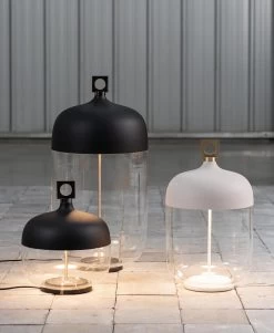 La série T-cotta propose des formes remarquables par leur simplicité et leur fluidité, dans un style contemporaine et minimaliste. Ici nous avons la lampe à poser, une véritable petite lanterne réalisée en verre de grande qualité et de la céramique noire mate sur la partie supérieure, qui est surmontée d’une petite pièce carrée de métal percé avec une finition noire chromée, et les 2 tiers inférieurs sont en verre transparent, laissant apparaître une tige métallique verticale qui donne un axe au luminaire. La lanterne est fixée sur un socle discret en marbre noir de Pietrasanta.