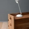 Cette lampe de bureau en métal vert olive Solo appartient à Task, la gamme la plus emblématique d’Original BTC, qui comprend de nombreuses lampes de bureau, plusieurs appliques et un plafonnier, toutes munies d’un réflecteur à la forme très pure, très caractéristique et indémodable. Le modèle présenté sur cette page a un pied recourbé simple, aux extrémités duquel se trouvent deux rotules permettant une orientation précise de la lampe. Le pied, de couleur assortie au réflecteur, procure à la lampe une très bonne stabilité. Cette lampe de bureau existe en métal laqué noir, crème, vert olive, chrome, gris, rouge et blanc. Le fil électrique est recouvert de tissu.