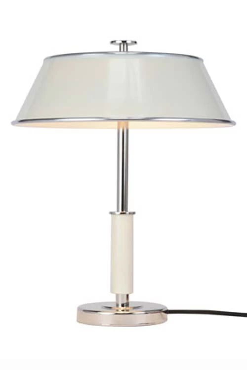 Victor est un immense classique intemporel de la lampe de bureau. Cette lampe existe en crème en rouge et en noir. Son abat-jour est en métal laqué de couleur coordonnée au bas de la jambe. Les reste des parties métalliques est en métal chromé. Le fil électrique est recouvert de fil noir à l’ancienne.