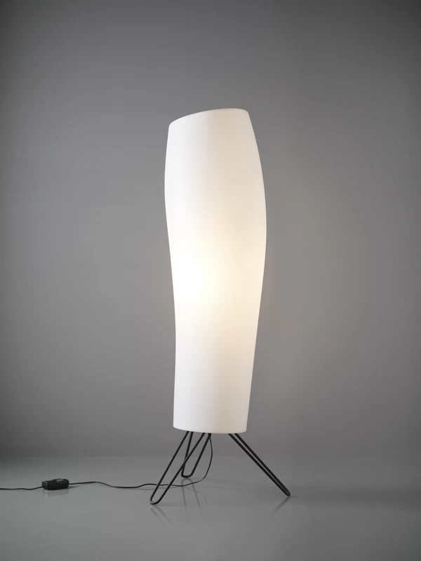 Beau modèle de lampadaire pensé tantôt pour l’intérieur tantôt pour l’extérieur, dans une pensée qui marie simplicité, design épuré, et courbes confortables, Warm porte bien son nom. Le lampadaire est constituée d’une structure en métal habillée d’une tube irrégulier et asymétrique en polyéthylène qui forme comme un cocon rassurant. Seuls dépassent les trois pieds en métal noir, qui contraste agréablement avec le blanc de l’abat-jour.