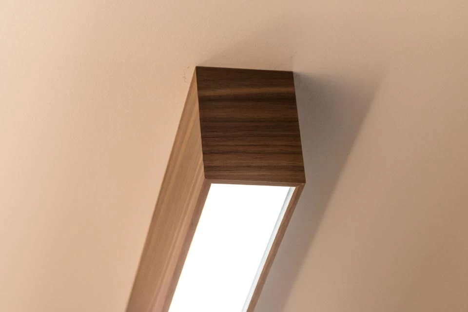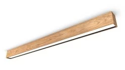 Linus est un grand plafonnier rectangulaire issu de la collection minimaliste WoodLED. C’est un élégant coffre de bois allongé (160cm pour ce modèle) dans lequel est encastré dans sa partie inférieure éclairage LED de haute qualité ( CRI>90) sous un diffuseur blanc. Le modèle est fixé directement au plafond. L’éclairage est puissant, le driver est intégré et compatible avec un variateur de lumière en DALI.