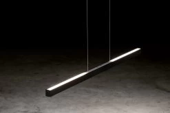 Xena 120cm est un trait de lumière horizontal qui illumine votre intérieur, une suspension linéaire noire au design contemporain minimaliste en métal finition laiton avec éclairage et variateur LED intégré et réglable en hauteur. Le modèle se compose d’une barre métallique horizontale noire équipée de modules LED qui offrent une lumière directe dirigée vers le sol et une lumière indirecte dirigée vers le plafond. La suspension est réglable en hauteur grâce à un enrouleur situé dans le support de plafond rectangulaire noir qui permet d’ajuster la hauteur d’une simple poussée vers le haut ou le bas. Le variateur de lumière dont le modèle est équipé fait également varier la température de couleur des LED, allant d’un blanc chaud à 2700k vers une lumière de plus en plus jaune en descendant à 2000k. Non seulement réputée pour la qualité de ses luminaires fabriqués du métal brut au produit fini en Allemagne, la maison Holkoetter, fondée en 1964, concentre également son expertise sur le développement d’un éclairage LED précis, durable et tendant vers le vertueux en terme environnemental.